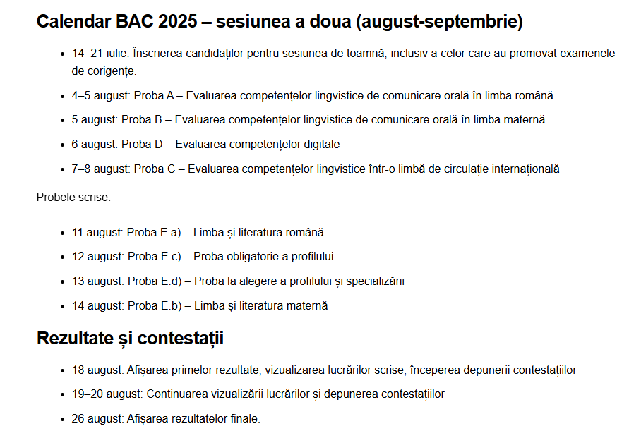 Anunt contestatii BAC august 2025