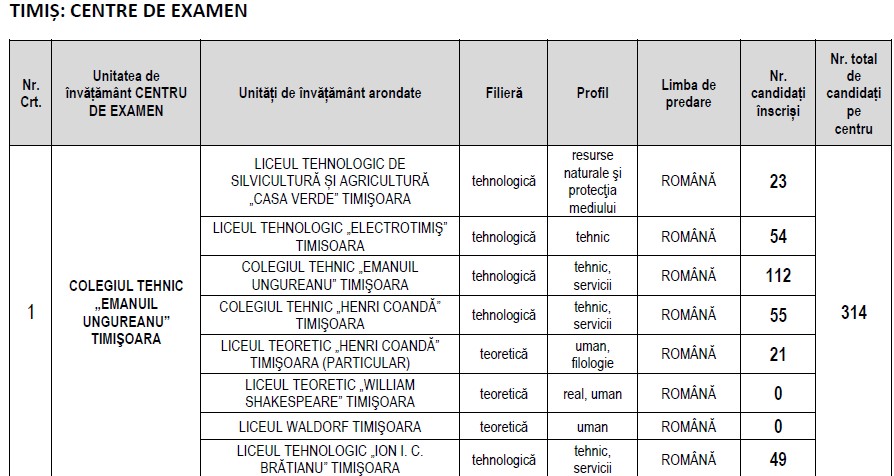 Intrarea în sălile de examen se face între orele 7,30-8,30 pe baza documentelor de identitate.